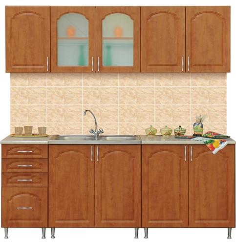 Korpusz: 18 mm-es laminált fronttal színazonos faforgácslap, 0,5-ös színazonos ABS élzárással. Szerkezeti összeépítés (ragasztott) köldökcsapozással. Front: 16 mm-es, belsõ oldalt laminált, frontoldalt 3D bemarással 0,4 mm vastag vákumfóliázott MDF. Munkalap: 28 mm-es, mérsékelten hõ és vízálló, Mosogatótálca: rozsdamentes, szifonnal, lefolyóval.